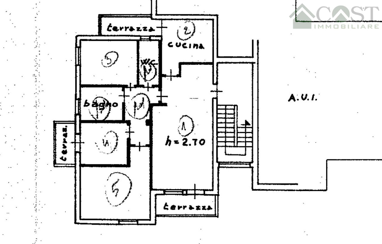 L'appartamento, disposto su unico livello, si compone di ingresso su ampia zona soggiorno/pranzo esposta a sud e servita da terrazzo e cucina abitabile anch'essa con accesso ad un comodissimo terrazzo di servizio.